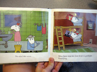 Så skal de sove, men først må de selvfølgelig lese hver sin godnatthistorie.